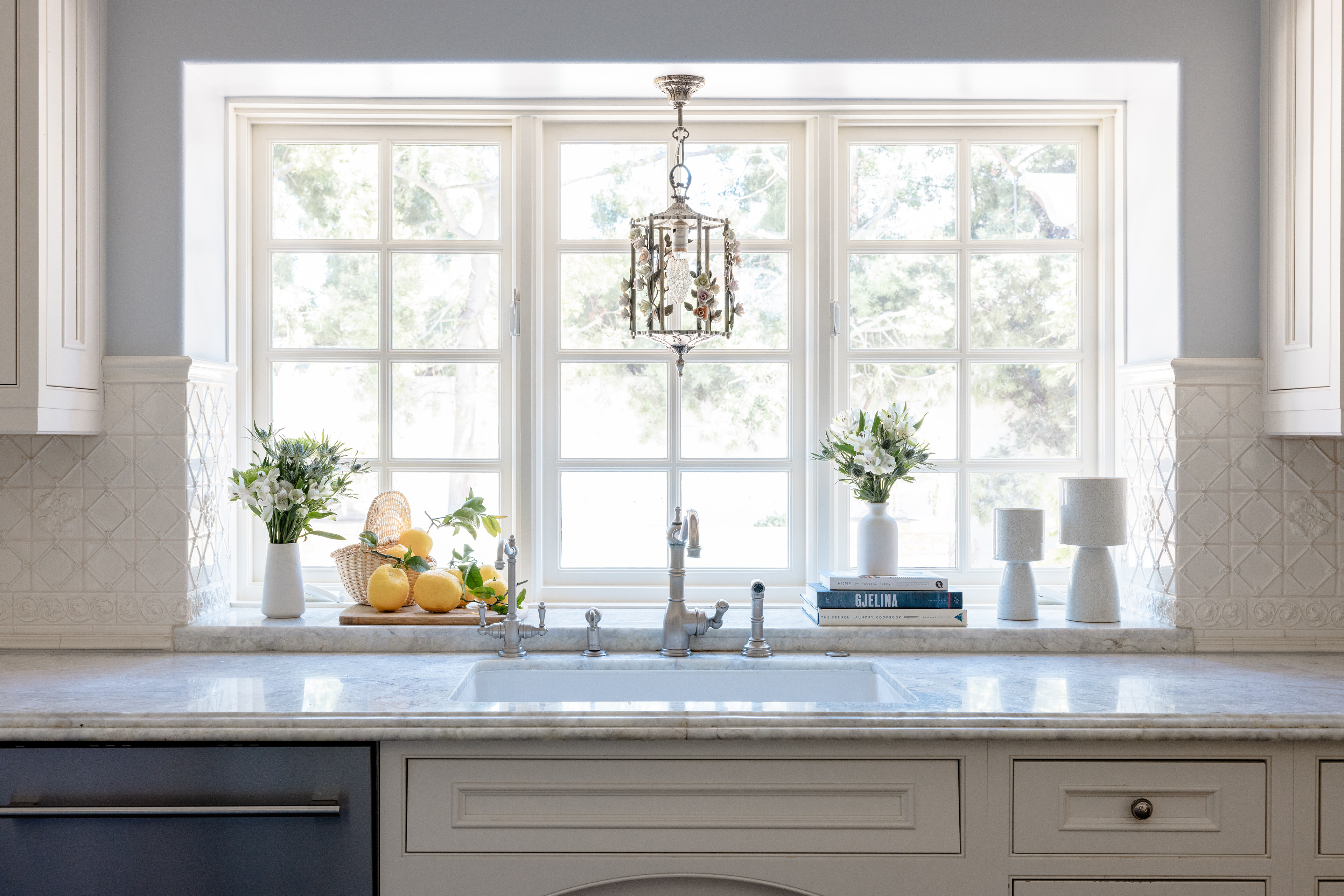 This project is a whimsical take on a ranch home. The clients wanted to refresh their home while retaining its original character and charm. We kept a few of the original pieces and mixed in more contemporary ones. We renovated to create more open space by removing interior columns and soffits. We also updated the flooring, lighting, casework, and paint throughout the home. We fully embraced indoor-outdoor living and made the interior feel like an extension of the exterior. All the materials in the project are durable and animal friendly.